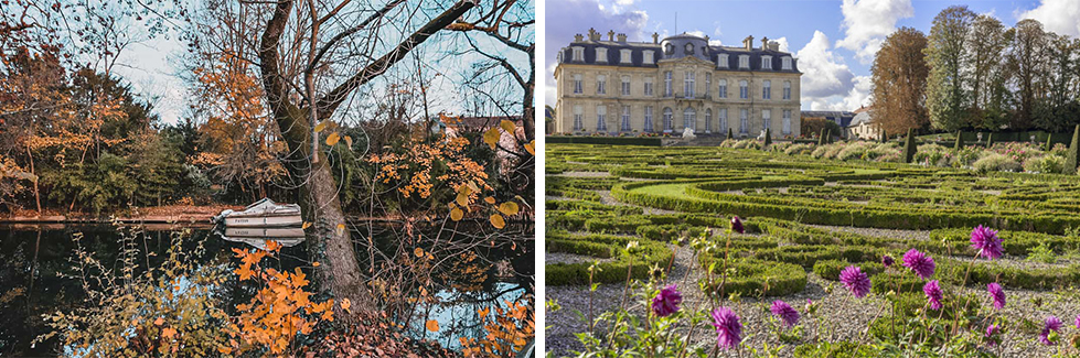 Pour les plus motivés, avant de rebrousser chemin, faites une balade dans les jolis jardins du château de Champs-sur-Marne, une grande baraque construite au XVIIIème pour un des trésoriers de Louis XIV. L'accès aux jardins est gratuit, mais n’hésitez pas à pousser la porte du château. Diderot y a séjourné, la marquise de Pompadour y a habité, Proust y a fait des mondanités, et il a aussi servi de lieu de tournage à pas mal de films et séries, comme Les Liaisons dangereuses, Marie-Antoinette et Versailles.