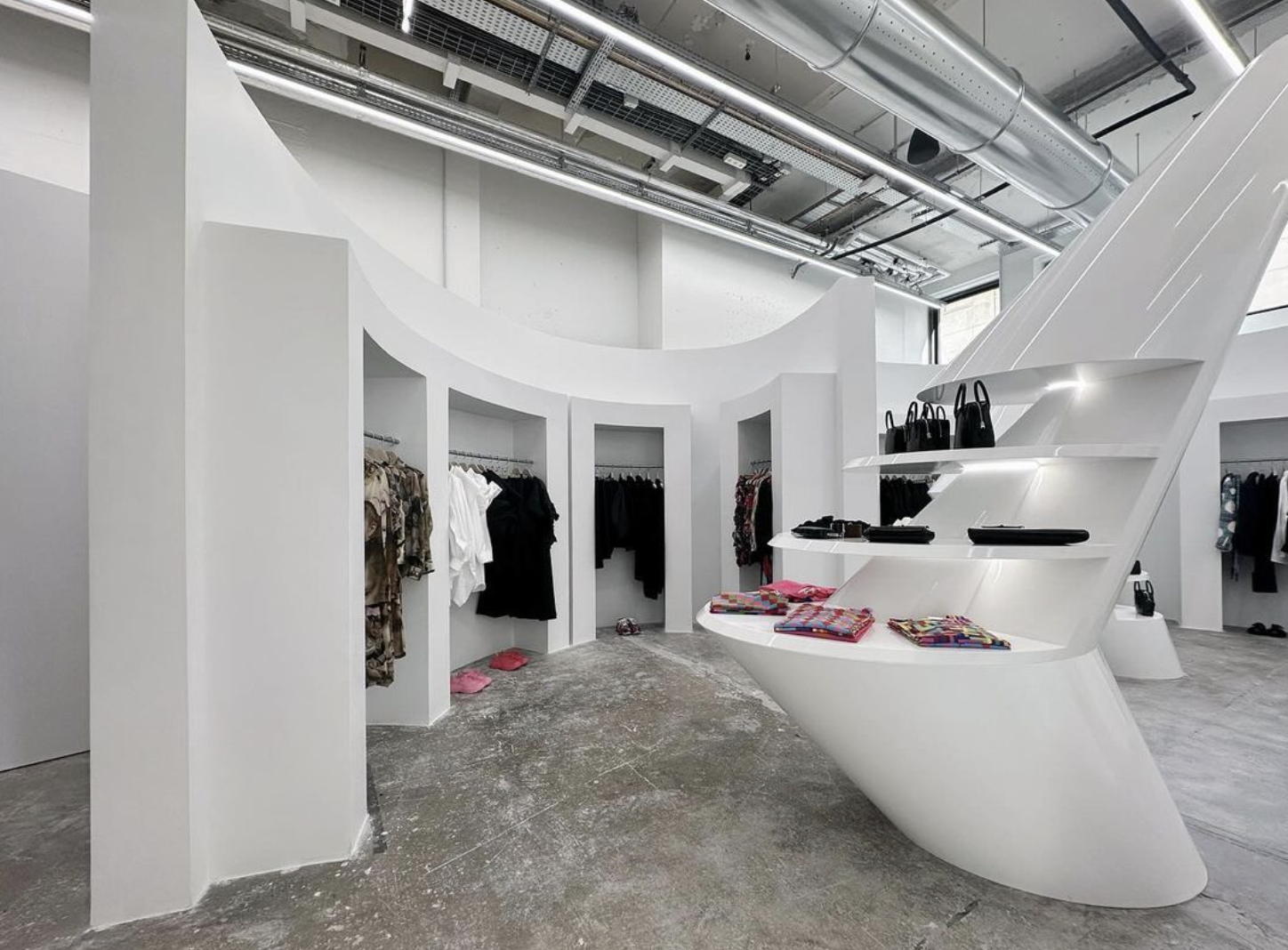 Dans cette boutique-labyrinthe, on ne sait pas à qui dire bonjour : les vendeurs ressemblent à des clients. Les caisses, elles, nous étonnent par leur discrétion. On se perd dans un dédale de mode où l’oeil, curieux, se pose sur des créations finement pensées, toujours plus-que-créatives et parfois importables. Ici, chaque vêtement appartient au futur. C’est le regard avant-gardiste de la fondatrice Rei Kawakubo, débarquée à Paris une quarantaine d’années plus tôt avec sa griffe Comme des Garçons, qui les choisit. Au sous-sol, l’expérience se mue en exposition, où les photos de Paolo Roversi capturent notre rétine et où l’univers de Matty Bovan (passé par la Central Saint Martins School) fusionne les eighties avec le 22ème siècle. Etat de sortie ? Presque en état de choc.
