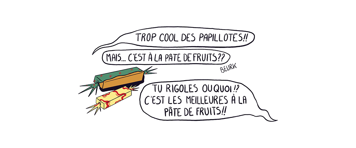 20. A-t-on le droit de choisir la papillote qu'on pioche ? Faut-il interdire celles aux pâtes de fruit ?