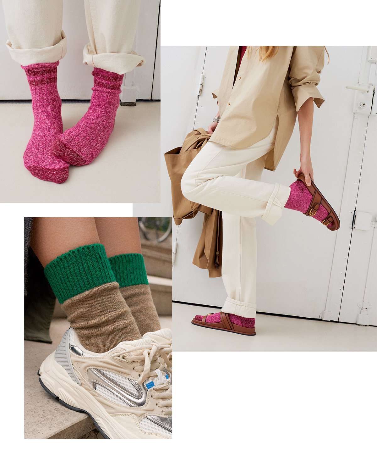 Comme la seule vérité qui compte, c'est celle du terrain* on vous propose de tester avec un prix d'amie sur votre premier coffret. Pour les lectrices de My Little Paris il est à 26€ au lieu de 34,50€ jusqu'à la fin du mois seulement avec le code MLPSOCKS. La remise est valable sur la première Box de l'abonnement sans engagement, et vous trouverez à l'intérieur : une paire en cachemire et laine mérinos pour les matins très frisquets, une paire en coton recyclé rose moucheté pour pimper vos mocassins noir, et une paire en coton côtelé rose flashy pour réveiller vos jeans endormis. A porter hautes les jours de froid et plus basses quand il fait soleil, les chaussettes Gambettes, c'est l'accessoire qui va muscler votre jeu toute l'année.