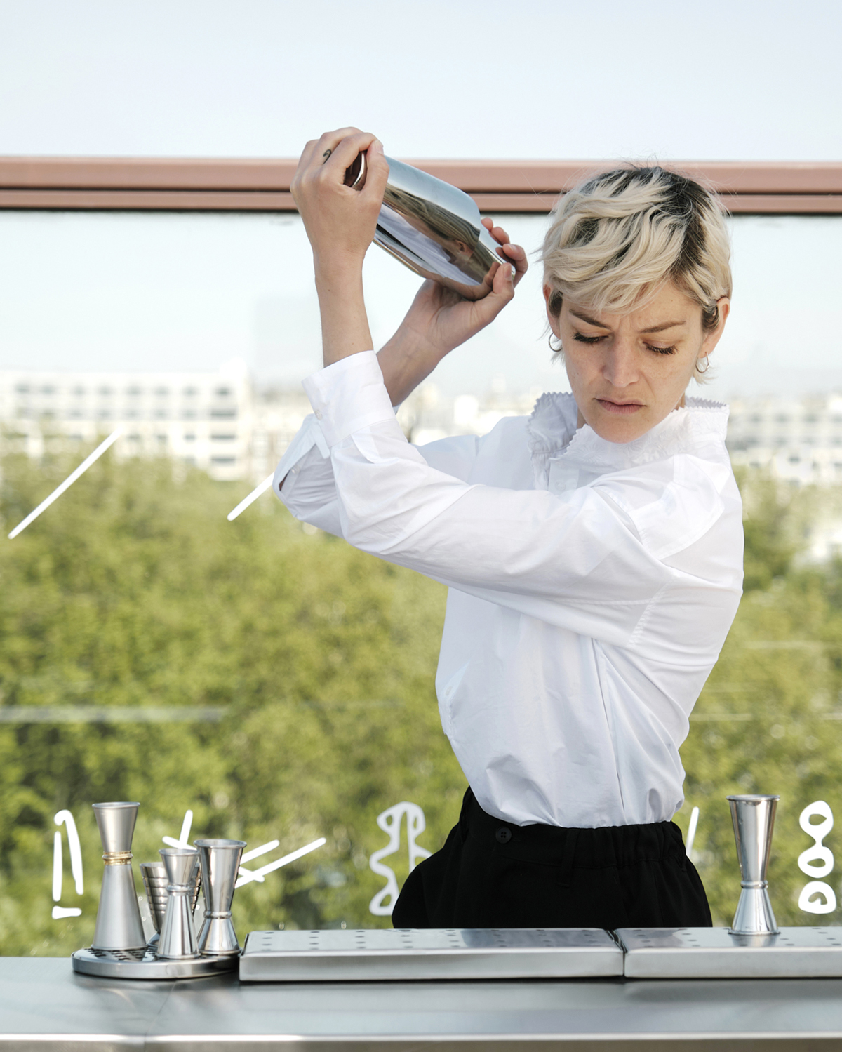 Si vous habitez du côté de Belleville, vous connaissez peut-être le bar Combat, où officie la phosphorescente Margot Lecarpentier. Ses cocktails sont mémorables. Alors quand Ducasse est entré dans son bar, il n'en n'est pas ressorti sans lui proposer de faire la carte des cocktails de la terrasse Les Ombres. On vous conseille l'Impécâpre, un mélange ébahissant de tequila infusé aux câpres, à siroter en touchant des yeux la Tour Eiffel.
